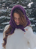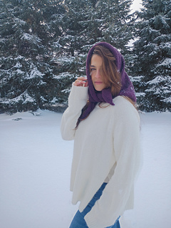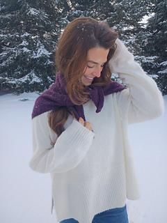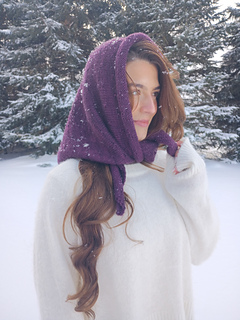 I love the versatility of the triangle scarf. It can be worn as a shawl or as a head scarf. Options for styling are virtually endless. Scarf can be knit to the size of your choosing. I used DK weight yarn for this project. If you want the Estonian stitches to show up more, a lighter color yarn will give them more visibility. I chose purple because I loved the color and the subtle texture.