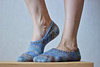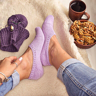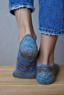 Socks are worked toe-up seamlessly in the round. Foot is worked back and forth in rows. Each sock is worked separately. The heel (Boomerang), as well, as darts, is shaped with German short rows for getting a perfect fit.