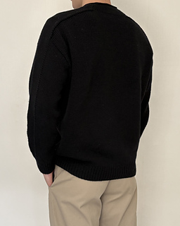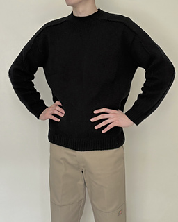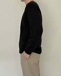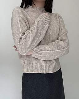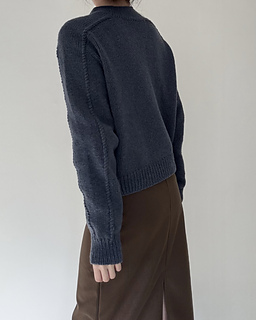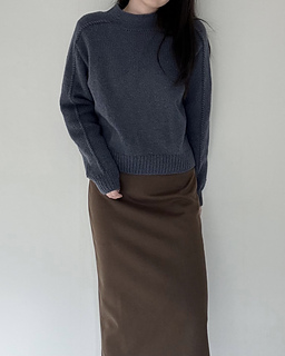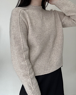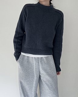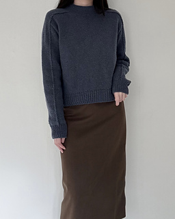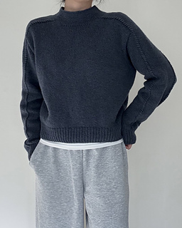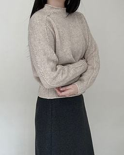 The Note Sweater is a top-down saddle shoulder sweater. After working the saddle shoulders, pick up stitches along one edge to shape the back with German short rows, then pick up stitches along the opposite edge to shape the front in the same way. Once the yoke is complete, join the front and back to work the body in the round. Pick up stitches around the neckline for a mock neck, then pick up stitches around the armholes and work the sleeves to finish.