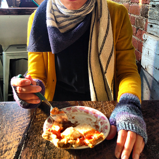 These fingerless mitts are the first wearable item that I have ever knit without a pattern.