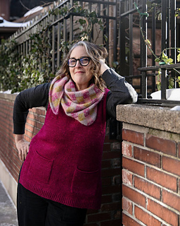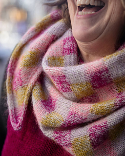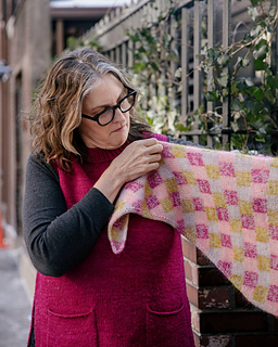 Nougat is a joyful exploration of texture and color, born from my love of intarsia and marling. By holding one strand of fingering-weight yarn together with one strand of fluffy mohair, I created a light, cozy fabric with beautiful depth.