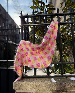 Change colors of the lace weight Mohair yarn for each square to create the gingham motif.