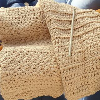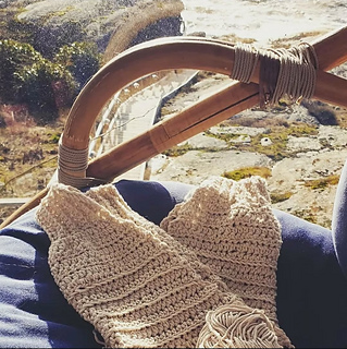 The texture from the dc sc combo stitch makes a very smooth fabric that is also satisfying to work with for bigger pieces, because it has some variation! Stitches used is sc, dc, sl st and ch. The armes have a few beautiful details in the texture that is also made with variation of the same stitches.