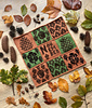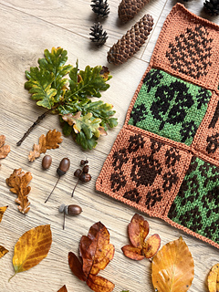 Pinecones, oak leaves and acorns evoke the richness of autumn in warm, rich colours.