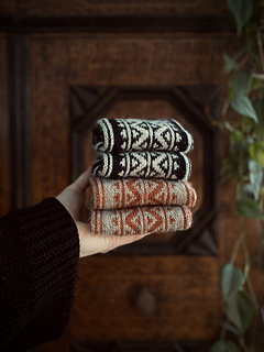 Diese Socken versuchen genau diese Stimmung einzufangen. Die einzelnen Elemente des Musters sind schlicht: vertikale Linien, Zickzack und kleine Dreiecke. Die Symmetrie verleiht dem Gesamtbild Balance und Harmonie, und die stetige Wiederholung des Musters erzeugt beim Stricken einen beruhigenden Rhythmus.