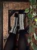 This pattern tries to mirror that mood. Its elements are simple: vertical lines, zigzags, and small triangles. The symmetry creates a strong sense of balance, and the many lengthwise repeats add a calming rhythm while knitting.