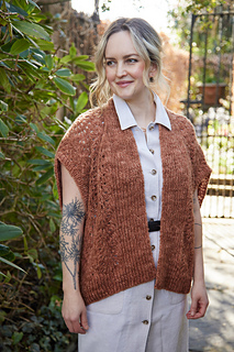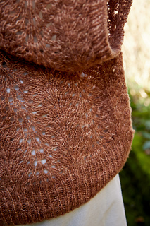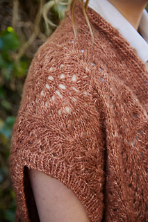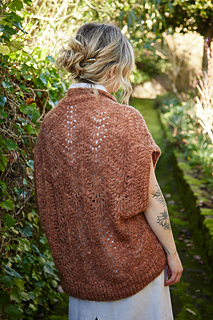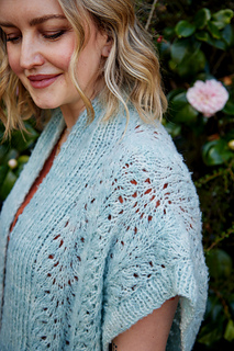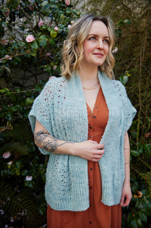 Snuggly short sleeved shrug with an oversized fit. Great layering piece that will keep you warm on a cool night. Oh So Fine Soufflé feels luxurious and irresistibly soft and it was a delight to work with.