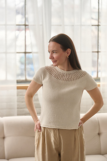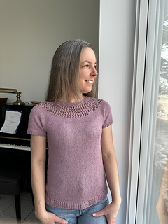 The Nuance Tee is a beginner friendly summer top with a simple circular yoke and minimal shaping, designed to give you that little “wow” every time you put it on and think, I made this, and it looks amazing.