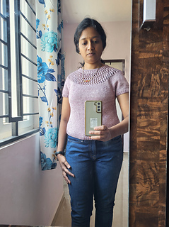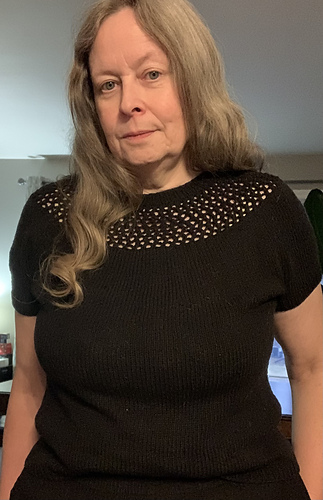 The Mesh Yoke: Worked in a decorative net stitch pattern for a lighter, more textured look.