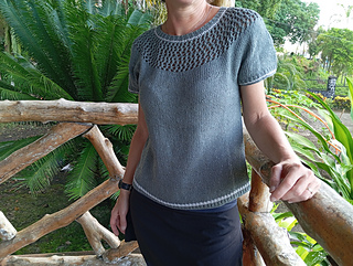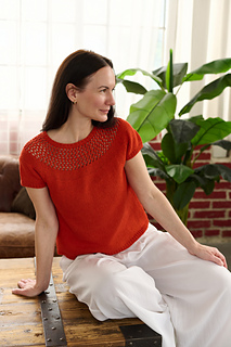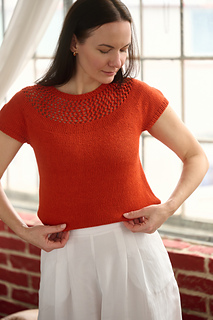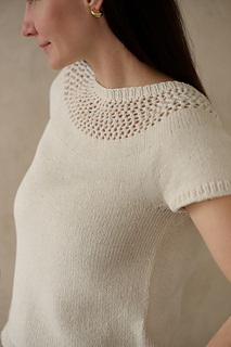 ♥ METHOD: This seamless tee is worked from the top down, beginning with the ribbed neckline. The circular yoke is shaped with 5 increase rounds. You can choose between two yoke options: