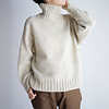 “Nukunuku sweater” is an oversized sweater worked from the top down, featuring shoulder bands extending from the turtleneck and ribs around the armholes. Its generous silhouette gently wraps your body like the Japanese word “Nukunuku” means (warm and cozy).