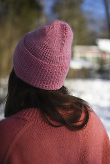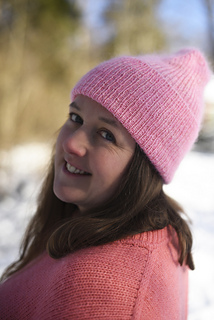 The beanie is knitted holding a strand of single-ply Merino together with Silk Mohair, giving Nuppu a light halo and a gentle structure. it’s an easy, rhythmic knit that lets the texture and shape shine, with a small pop of colour and softness for everyday wear.