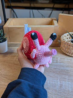 This crochet pattern details how to crochet Nuu inspired by Silksong.