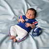 Top is done in all one piece and pants as well. Logos are not included in pattern. This crochet outfit can be altered or done in any colors you would like. Makes a great gift to make for the sports fans of a new little bundle.