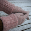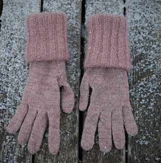 The glove is worked with one strand of yarn (here: Wool local by Erica Knight). For the cuff, another strand of Mohair yarn (here: Silkhair by Lana Grossa) in matching color is added.