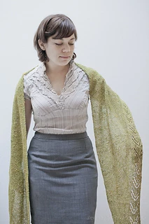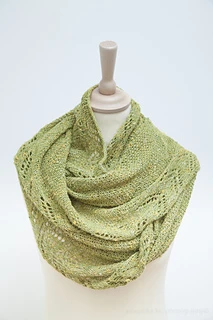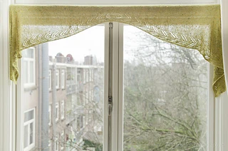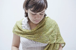 Oar is an interesting paddle-shaped shawl pattern with a chevron lace edging. It works well as a summery shawl, but is surprisingly lovely as a window valance as well. Knit it, hang it, wear it!