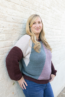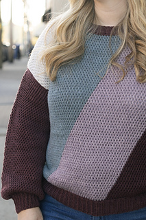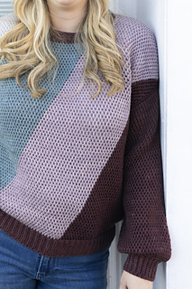 The Oblique Sweater is a top-down, four-color Tunisian crochet sweater that celebrates geometry, texture, and color. Inspired by the clean angles of an oblique rectangular prism, this DK-weight design features bold diagonal color blocks that flow seamlessly across the body and sleeves.