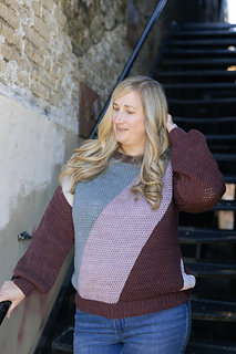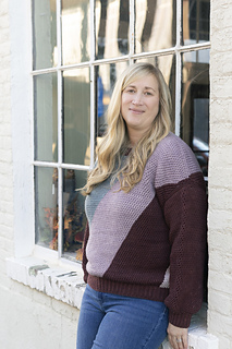 The diagonal line forms crisp, perfect transitions between each color section, creating a modern, architectural look with cozy thickness and beautiful drape. Whether you do with all tonals or one or more variegated colorways, the Oblique Sweater offers endless opportunities to play with 4 to 6 colorways.