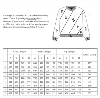 Pattern provides instructions for sizes 1 - 9. The sweater is designed with 4 - 6 in positive ease. See photos for size chart.