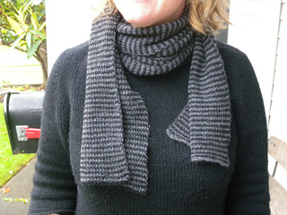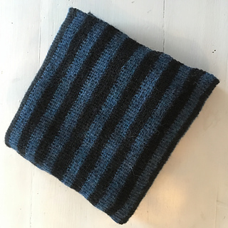 Cast on 80(200) stitches using whichever method you prefer (I use the backward loop). 1st and every following row: K1P1 repeat to end of row. Stripe pattern: For narrow stripes alternate color A and B after every two rows, carrying the unused color up the side. For wider stripes, alternate color A and B after every sixth row. Be sure to twist the unused color after every two rows as you carry it along to avoid loops along the side. It is a very good idea to spit splice our yarn if there are any breaks along the way. When you reach the desired length cast off using whichever method you prefer.