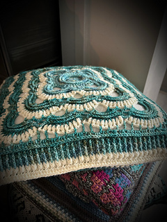 Oceanborn was a unique shawl pattern that I created with a challenge to myself in mind. I wanted to make a quality pattern for a set of hand-dyed sock yarns. Many of the designs for these yarns are intended only for knitting, and I wanted to make that change here. And so, I did! I took the ocean as an inspiration. The white foam on the rolling waves could be found in this shawl. And…as I loved the outcome of this design so much, why not extend the pattern to a cushion? This wasn’t as easy as it seemed at first, but I succeeded. It is like an overview of the ocean’s surface. Enjoy the pattern, and let yourself be guided by the waves!