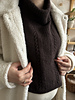 Ocieplacz na szyję z podwójną plisą i dłuższym przodem. Ozdobiony warkoczowym splotem na reglanach i przodzie.