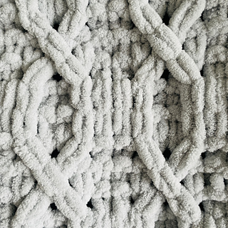 SUGGESTED MATERIALS: 3 balls of Bernat Alize Blanket-EZ Yarn (6.4oz, 180g) (Image shown is the colour ‘Smoke’).