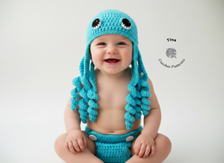 It is a TUTORIAL on how to crochet Octopus Baby Set. You will have a quick and fun time crocheting this cute baby set. This cute baby set will make a great gift for baby shower and Photo Prop!