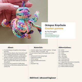 Keychain measures 8cm/3.7inches long when using the same materials as shown in the pattern