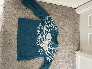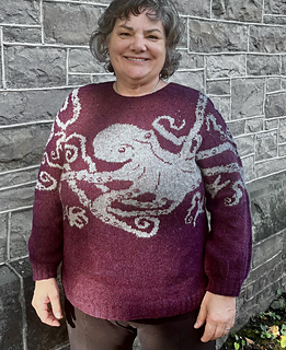 The Octopus Yoked Sweater is seamless, knitted top down, in the round, with a stranded yoke.