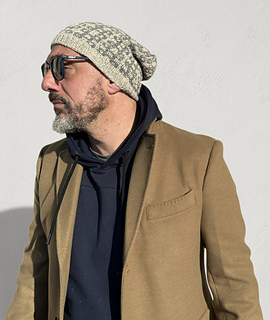 Odino Hat is a bottom-up knitted hat that begins with a provisional cast-on using waste yarn. After a few rounds worked in tubular knitting, you continue in 1x1 rib with slipped stitches, and then proceed with the Fair Isle colorwork section.