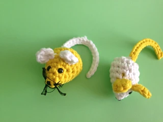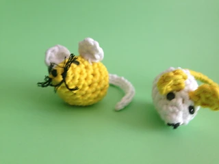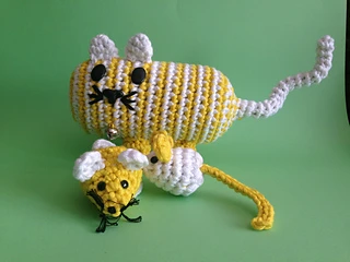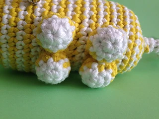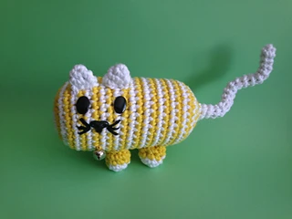 I had some white and yellow yarn from previous projects and as my daughter was asking for a (real) cat I decided to give her a toy cat!