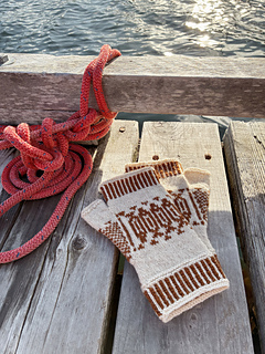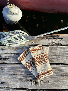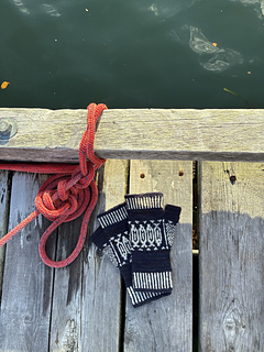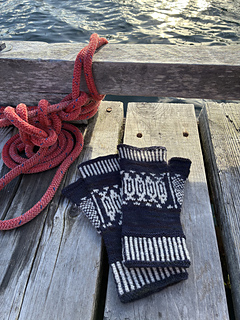 A new member is joining the Old Salt family! The Old Salt Mitts feature the same sardine motif from the Old Salt Socks (yes, we still have an unruly fish that stubbornly wants to face the other direction!) but the fingerless mitts include some additional features that give a nod to Fair Isle knitting.