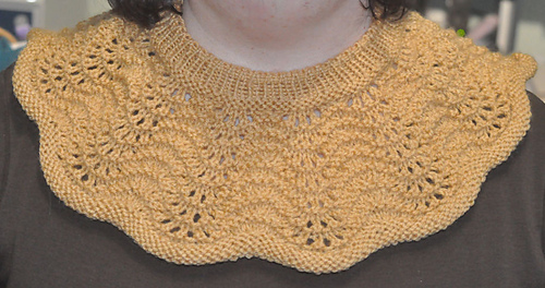 I also used Yarnsmiths Create DK to create a sample of a shorter neck to show it will work the same way. That’s the tan version shown in the pictures. I used less than 100g of that.