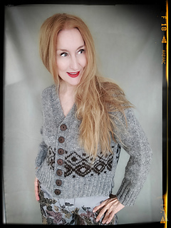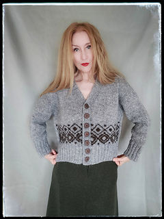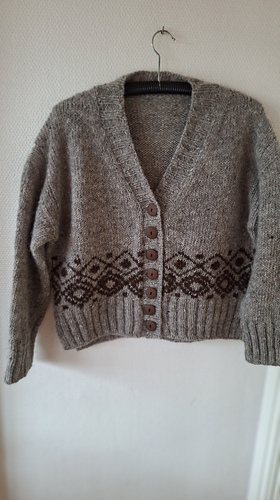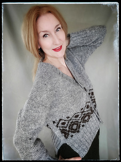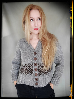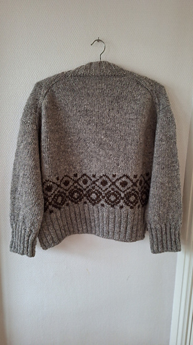 The pattern is constructed with steek sts, so the stranded pattern can be knitted in the round. But if you are a more experienced knitter, you can choose to knit the entire cardigan back and forth