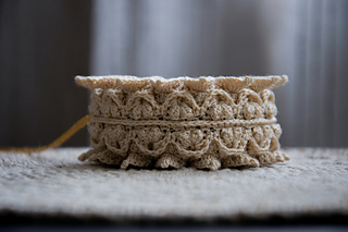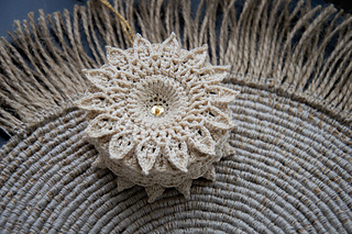 The pattern consists of 16 rounds. Finished piece will be about 8 cm across and 3 cm thick.