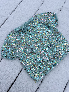Glitter Top for the Birthday Party. The top is knitted from the top down. There is a slit at the neckline that can be placed either at the center back or at the center front. There are no short rows in the pattern, but you may add them if desired.