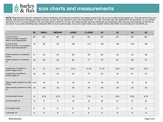 Nine sizes: XS, (S, M, L, XL) (2X, 3X, 4X, 5X) to fit bust sizes: 30”, 34”, 38”, 42”, 46”, 50”, 54”, 58”, 62” inches NOT including the 6” / 15 cm of positive ease which will be added to your bust measurement.