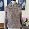 Brown mock neck sweater: Rico Design Creative Melange Garzato Aran Wonderball (in Ecru 007) held together with Cascade Eco (in gunmetal 8020)