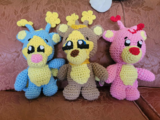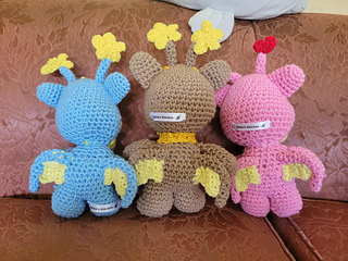 12 Page PDF with full color photos and instructions on how to make your very own Ona! For this pattern, we’ve included the Standard, Desert, and Valentine’s variations. If following the US Crochet Terms/English Instructions, the finished plush(s) should be about 10 inches tall to the top of the antenna.