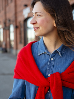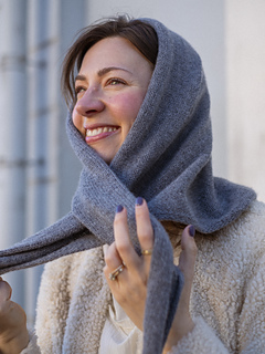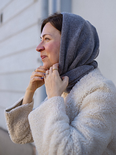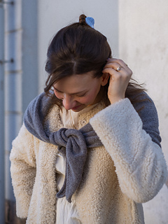 The One More Row Scarf was born from a desire for a simple yet versatile accessory. I wanted to knit a scarf that I could wrap around my neck, tie loosely around my shoulders as a statement accessory, or wear as a hood for extra warmth. The scarf is knitted in Stockinette stitch with elegant i-cord edges.
