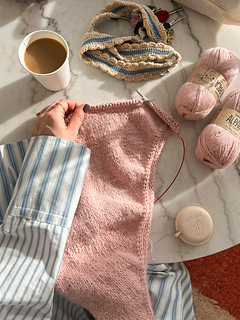 Gauge is not critical for this project. Just make sure you’re happy with the fabric you’re creating. If it feels too stiff, go up a needle size. If it feels too loose, go down a needle size.