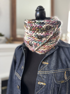 Style your outfit with the Onigama Cowl or add it to your maker markets for the future. This clean lines design can be fancied up by your favorite yarn, unique buttons or be kept simple with its asymmetrical design.