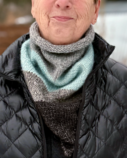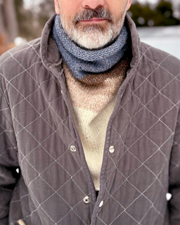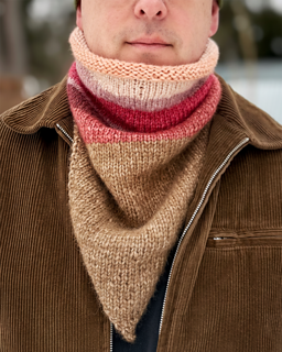 The Open Coat Cowl is a neck warmer that does what it says: keeps you warm with your coat open, with a snug fit at the neck and a bandana style front to tuck in your jacket. Stockinette stitch, no fuss, and cozy Snefnug by CaMaRose does all the heavy lifting: a very simple pattern you can easily modify to suit you.