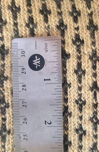 The gauge within the color work pattern is 10 stitches per inch and 12 rows per inch after blocking.