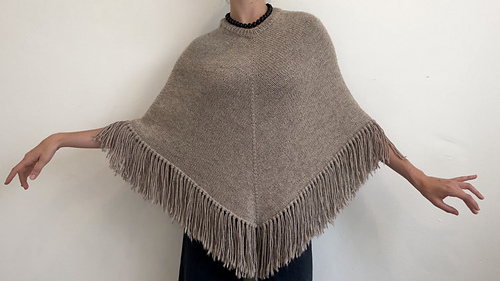 This pattern can be worked with any yarn weight, although I recommend a 10ply gauge. For the intended look, choose a yarn with nice drape, such as an alpaca–wool blend. A drapey fabric will allow the poncho to fall and relax over the shoulders.