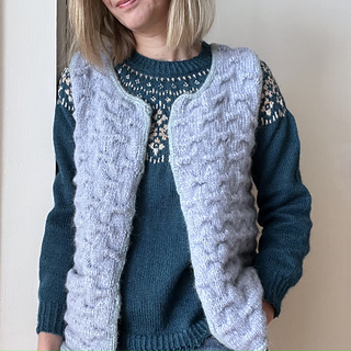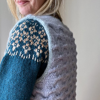 Orin est un gilet sans manche qui se tricote du haut vers le bas (top-down) sans couture ajusté aux épaules.