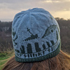 The Orkney Islands are filled with iconic landmarks. This pattern celebrates the Old Man of Hoy, the Italian Chapel, Maeshowe, the Ring of Brodgar, and other common Orcadian sights. The colourwork is stranded and there are some quite long floats to carry so be sure you’re comfortable catching floats before you start. To work a larger or smaller hat try larger or smaller needles. Either the hat or cowl can be made from one hank of each colour. The hat is slightly slouchy, omitting the runes will give a snugger ‘beanie’ fit.