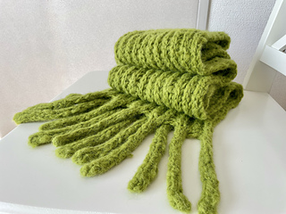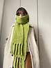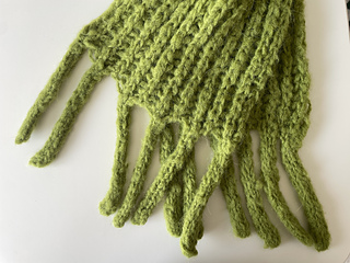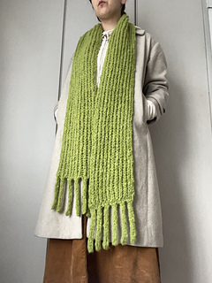 the oscar scarf is inspired by scarves from acne studios; the ones with the finger-like fringe and the fuzzy mohair texture that have been trendy for fall/winter 2025. in a bright color it makes a great statement scarf, and a fun way to ease the mid-winter blues.