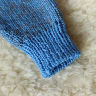 Bauch- und Beinbündchen werden 2-fädig mit der Hauptfarbe gestrickt. Der Rest wird mit einem Faden Haupt- und einem Faden Nebenfarbe gestrickt.